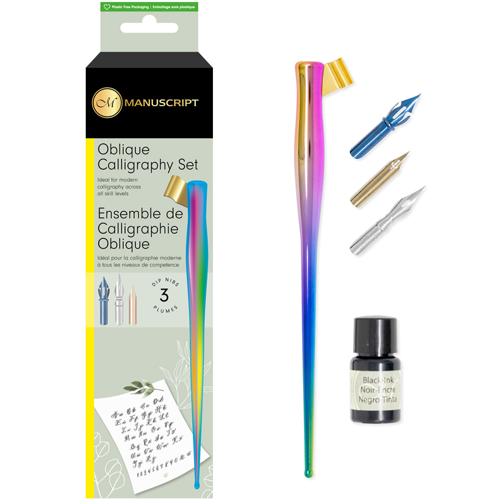 Glitter with the Glass Pen with Satyam Tank: Watercolour paper, a pencil, Manuscript Glass Dip Pen Set, Manuscript Mini Shimmer Inks in Rainbow.
